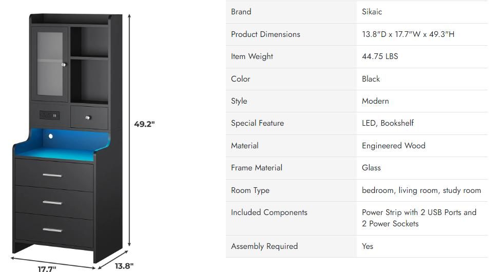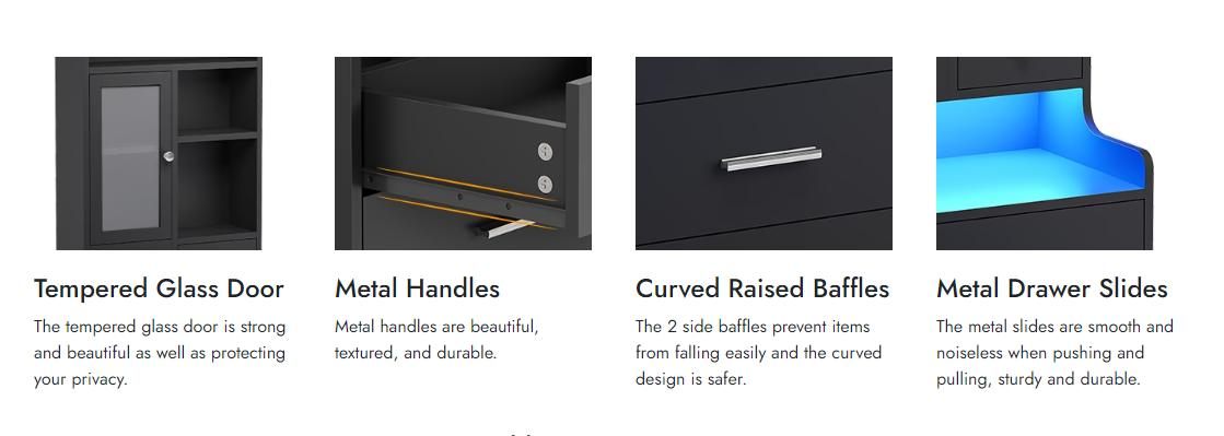 LED Tall Nightstand With Charging Station Drawers Shelves Glass Door Storage Lighted Vanity Table Bedside Cabinet Modern Furniture