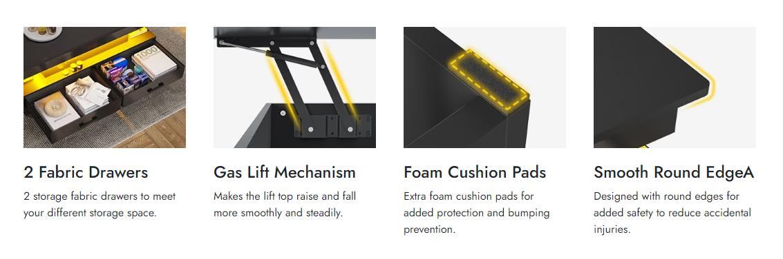 Sikaic 40 Inches Lift Top Coffee Table With 2 Fabric Drawers And LED Light